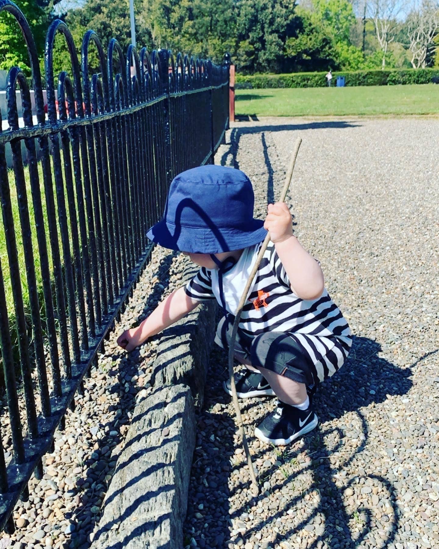 This is very much a tale of two halves… Everything was fine to start off with, we all happily wandering around, enjoyed the scenery and randomly picked which trail we would go next. Not long after arriving, I made the mistake of letting go of Harry’s hand *Face palm*. He was bloody insistent on trying to climb into every prickly hedge and bush and launch himself down all the steep dangerous edges he could find- is this a boy thing? Please tell me it’s a boy thing?! He basically wasn’t safe roaming alone but wasn’t happy to hold my hand after being given a taste of freedom- Whoops! Anyway after several huge meltdowns and many failed attempts to distract him, we managed to find ‘the right stick’ and everything was ‘Hunky Dory’ again! PHEW!