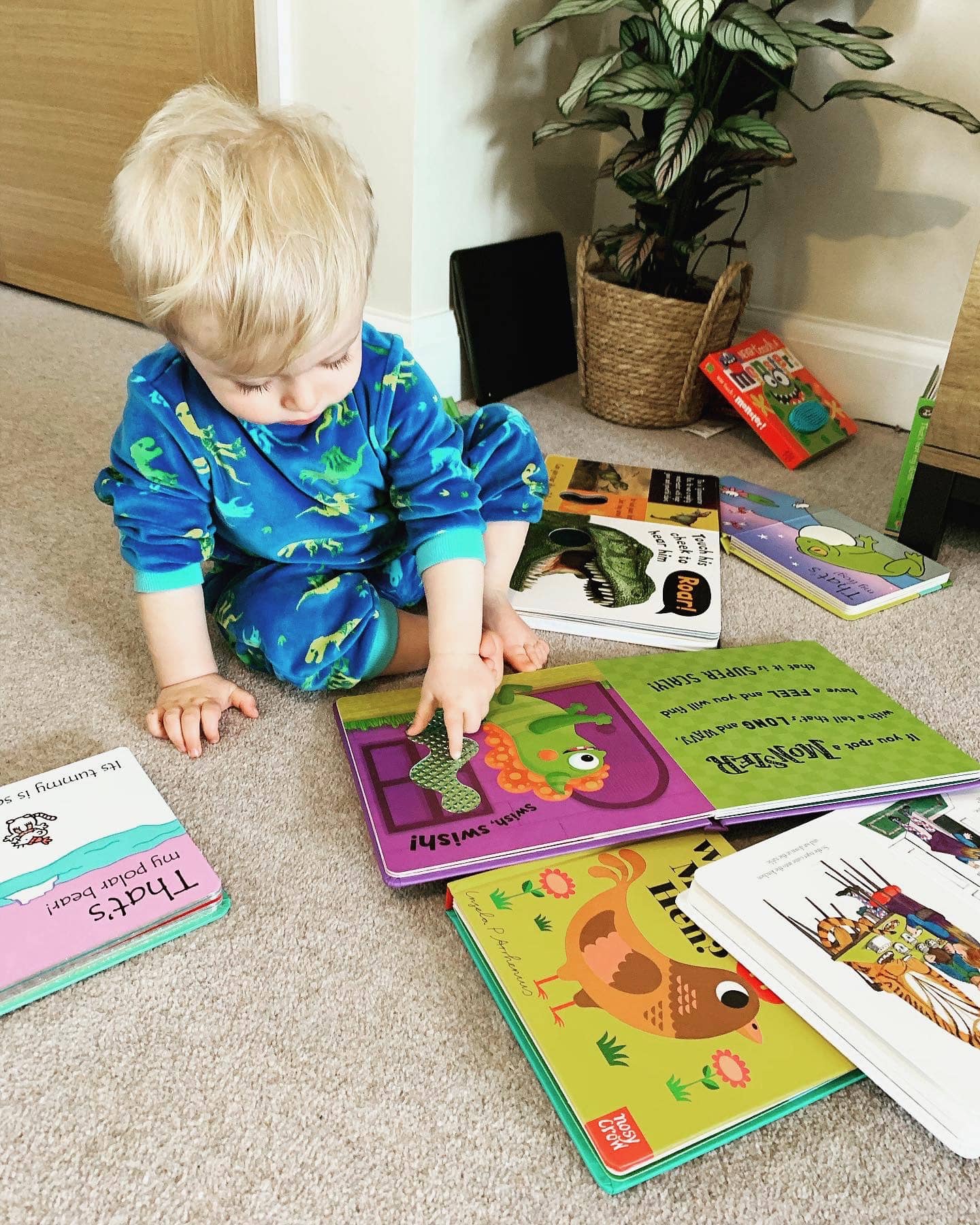 I LOVE that Harry enjoys books so much. I don’t know if it’s the teacher in me, or that fact that it was only in my twenties that I found my true love for books. Every morning, without fail, Harry will take himself off to sit and enjoy a pile books by himself, and it melts my heart everytime I catch him sat alone flicking through the pages.