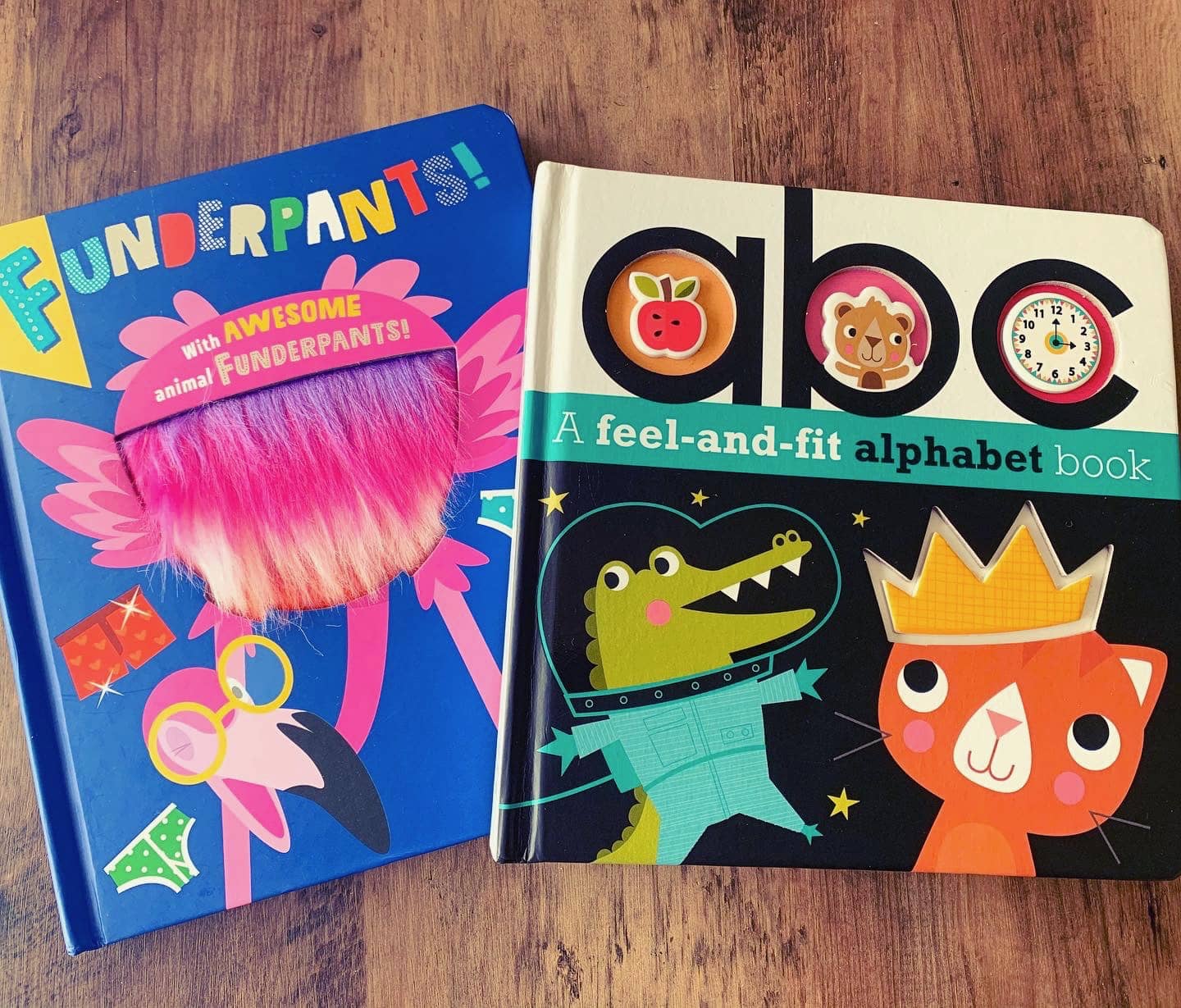 After seeing how much Harry enjoyed the ‘That’s not my’ books, we started gathering other books that contained ‘feely bits’ for him to enjoy. His favourites include ‘Never touch a_____‘ collection, ‘A feel-and-fit alphabet book‘ and ‘Funderpants!‘.