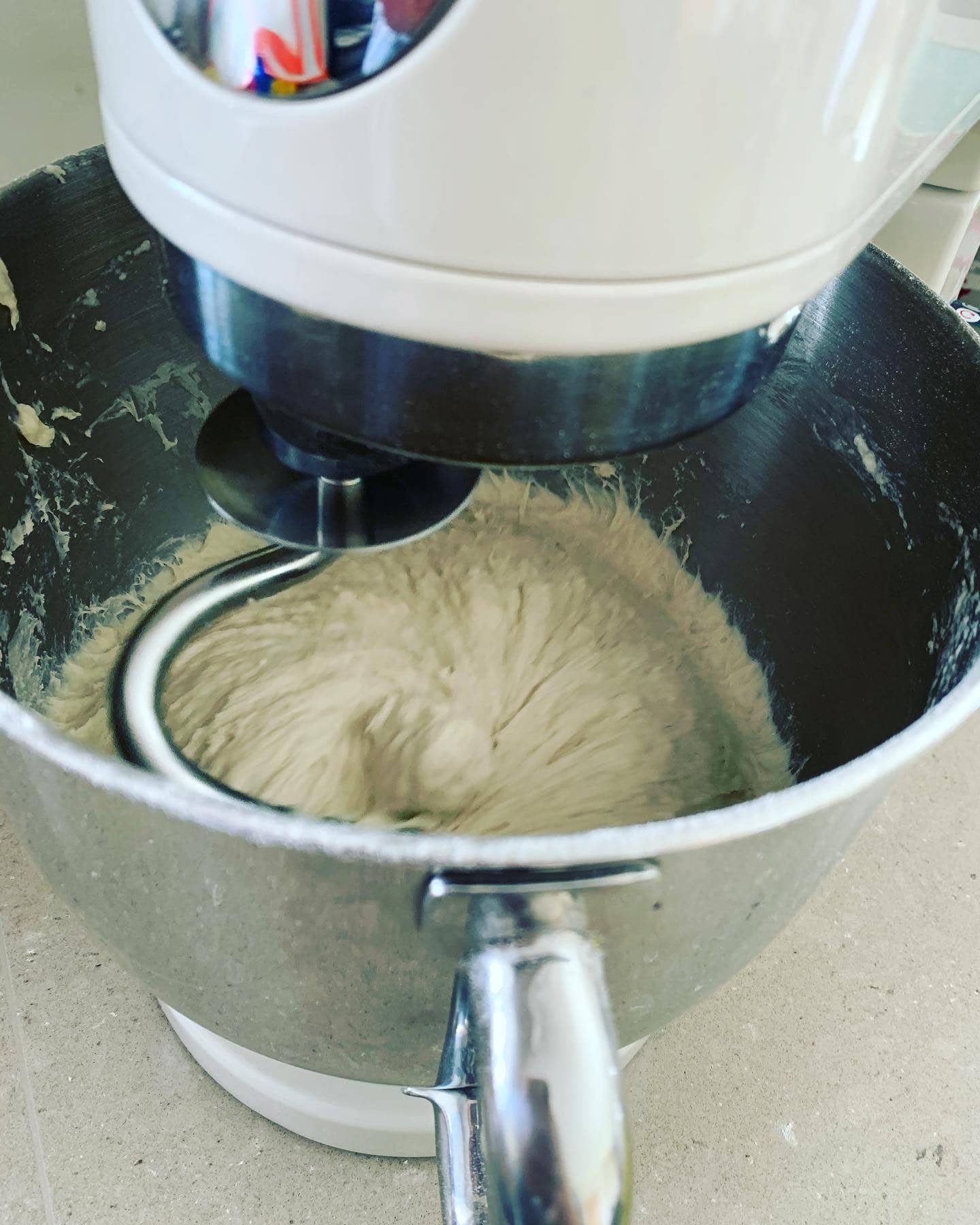 4. Using a dough hook, knead until you have a smooth, springy dough