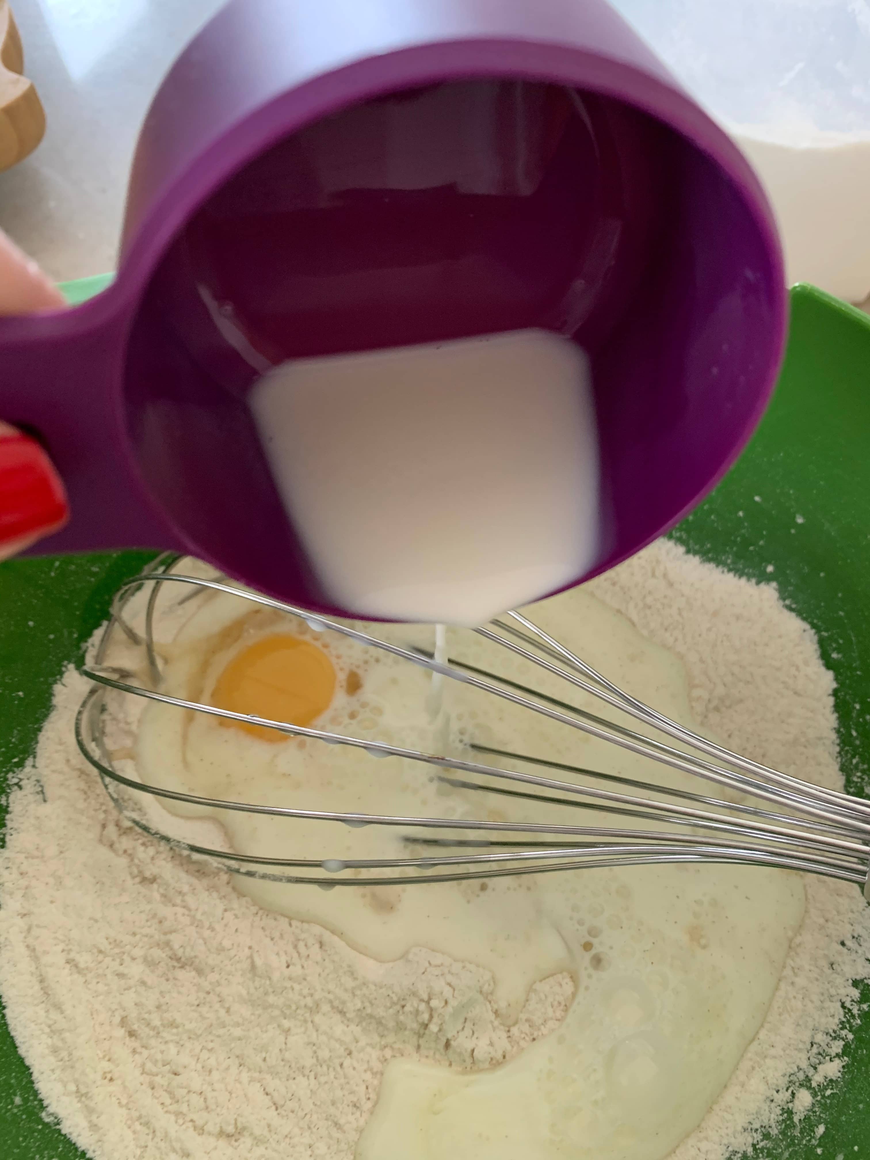 - Now add your egg and milk- stir until smooth