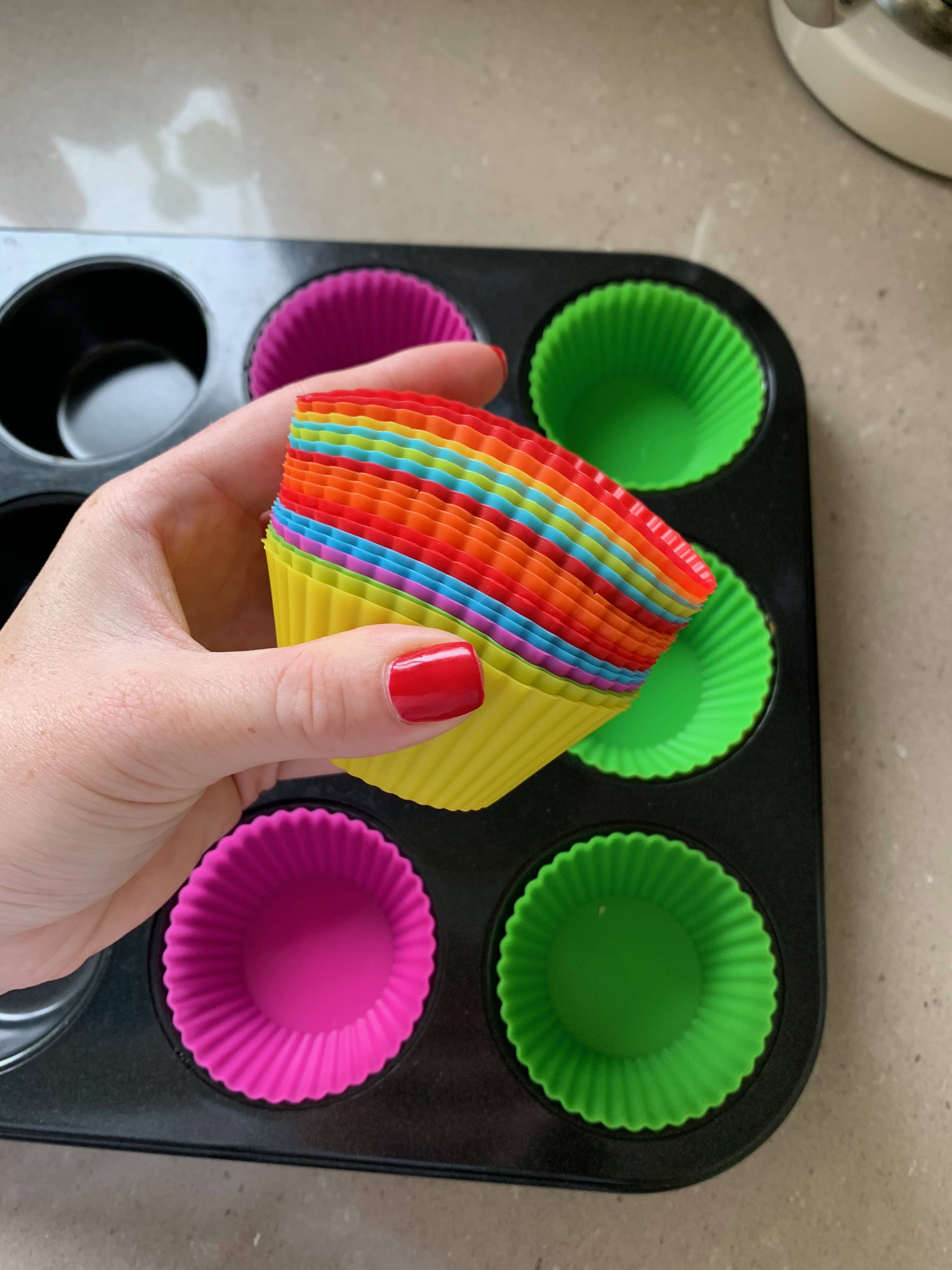 - Place muffin cases into muffin tray- I used silicone cases