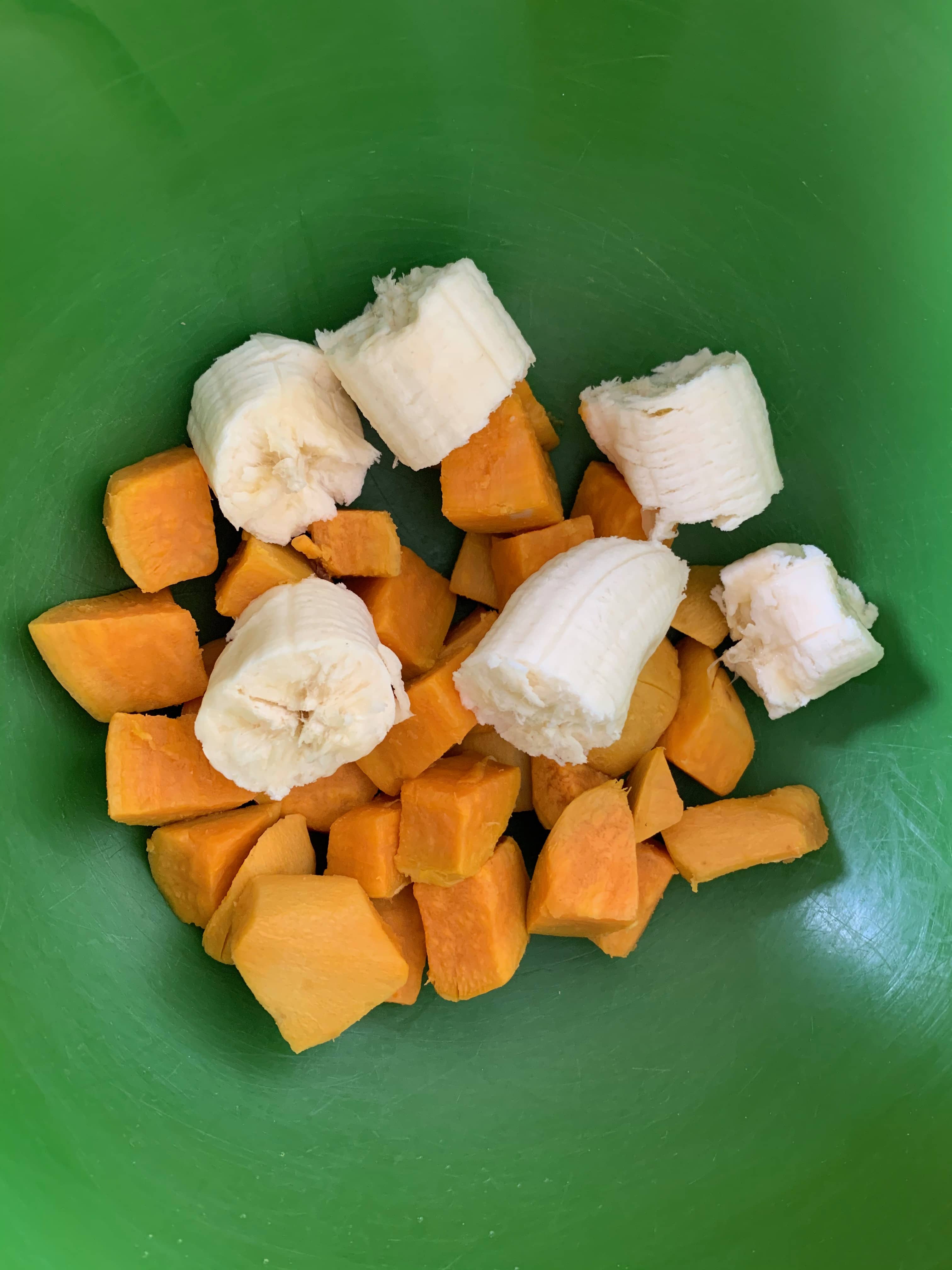 I found these potato scones online and wondered how I could adapt them for Harry… I removed the brown sugar, used sweet potato instead of regular potatoes and added banana for extra sweetness/flavour and they came out better than I had hoped!
