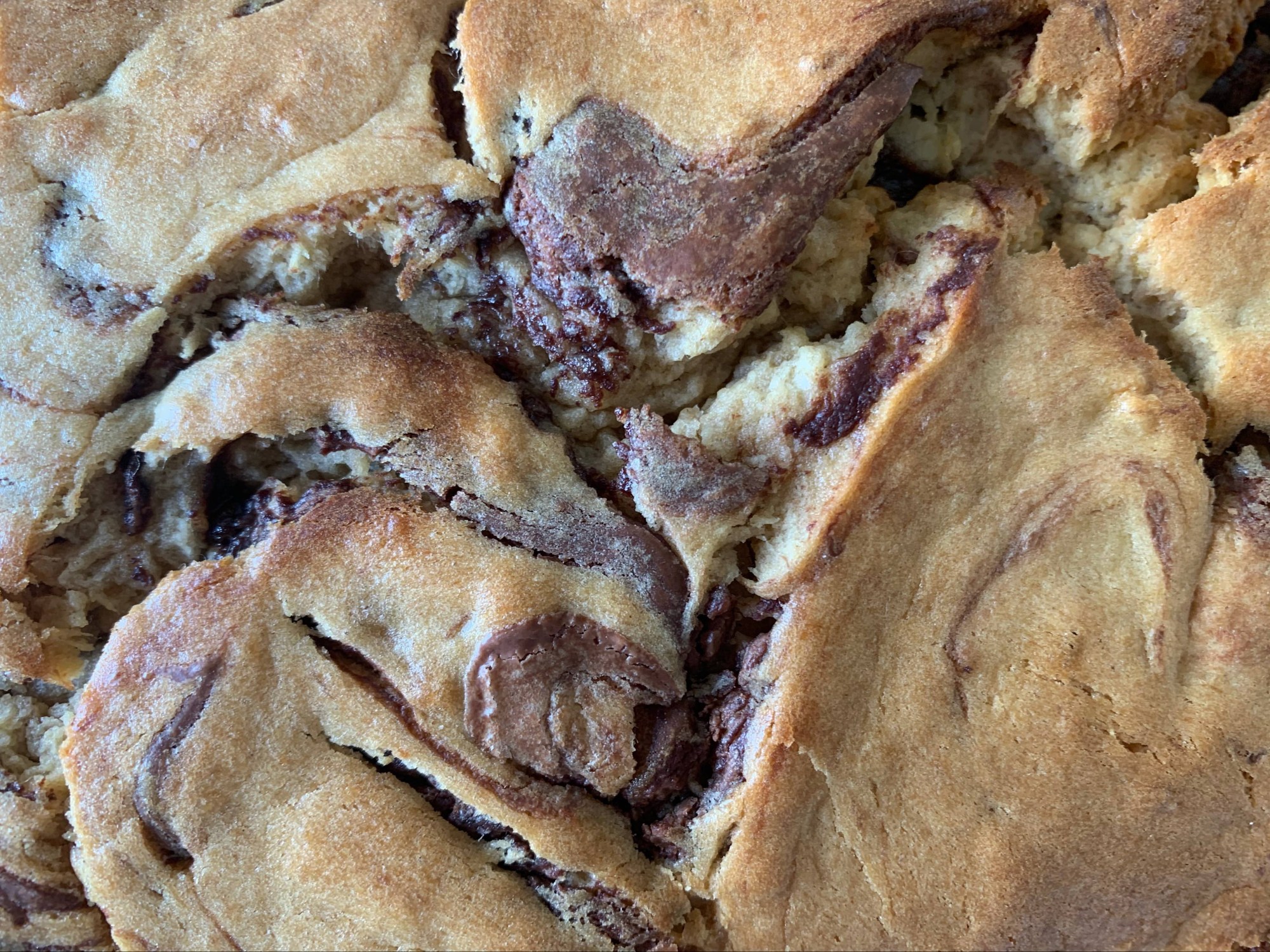 - Spoon in the remaining half of the batter over and repeat with the final table spoon of Nutella- See pictures below for guidance if needed.