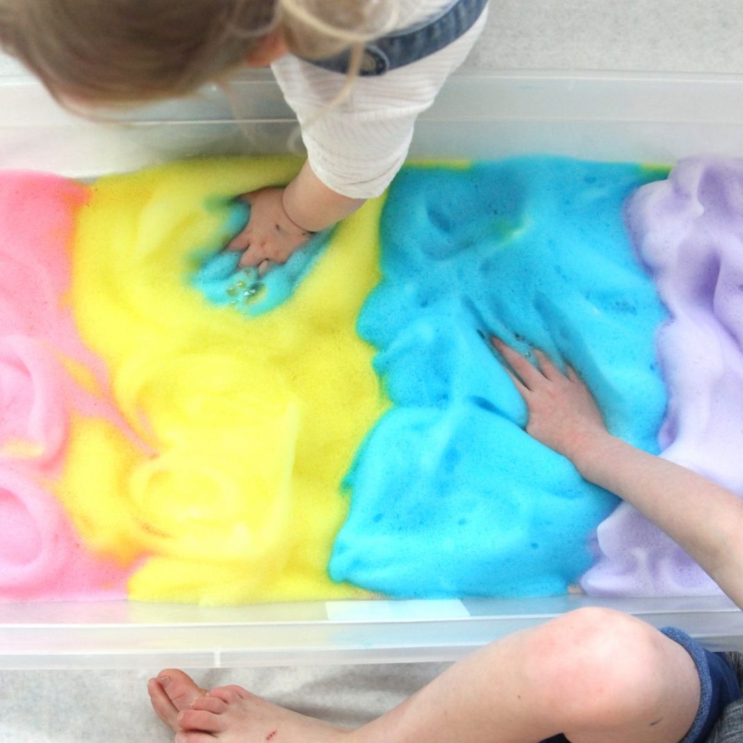 Bubble foam is something we have used in the garden over lockdown- I actually have a video of us putting Harry down the garden slide through bubble foam… it makes me cry laugh every time I watch it, his face is a picture! Safe to say, Harry did not appriciate it AT ALL!