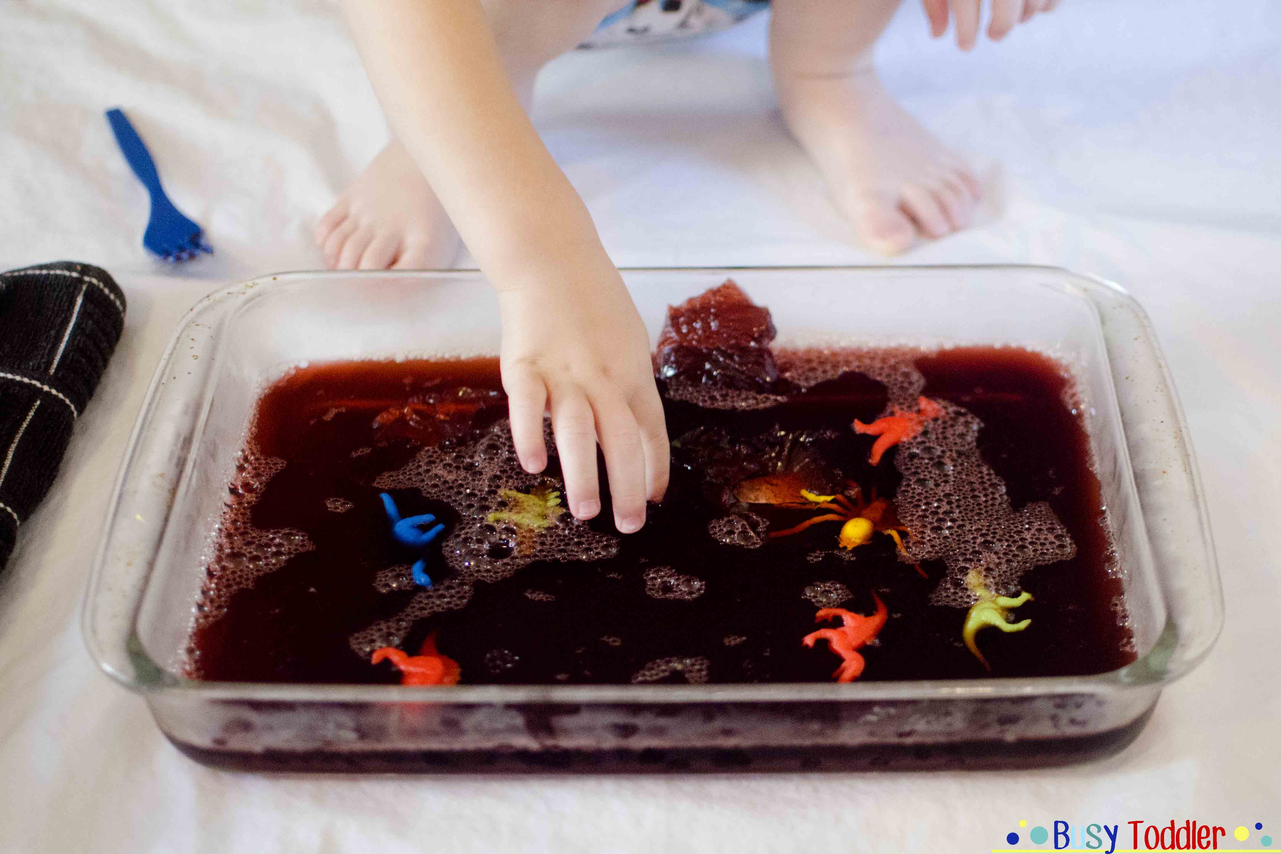 I have seen this idea a few times on a couple of Instagram and blog pages. I also used the same idea with letters and numbers many years ago for a nursery job interview- the children loved it and I am positive Harry will too! I plan to bury some small dinosaurs for Harry, similar to the ‘imagination tree’s frogs in jelly’ above.