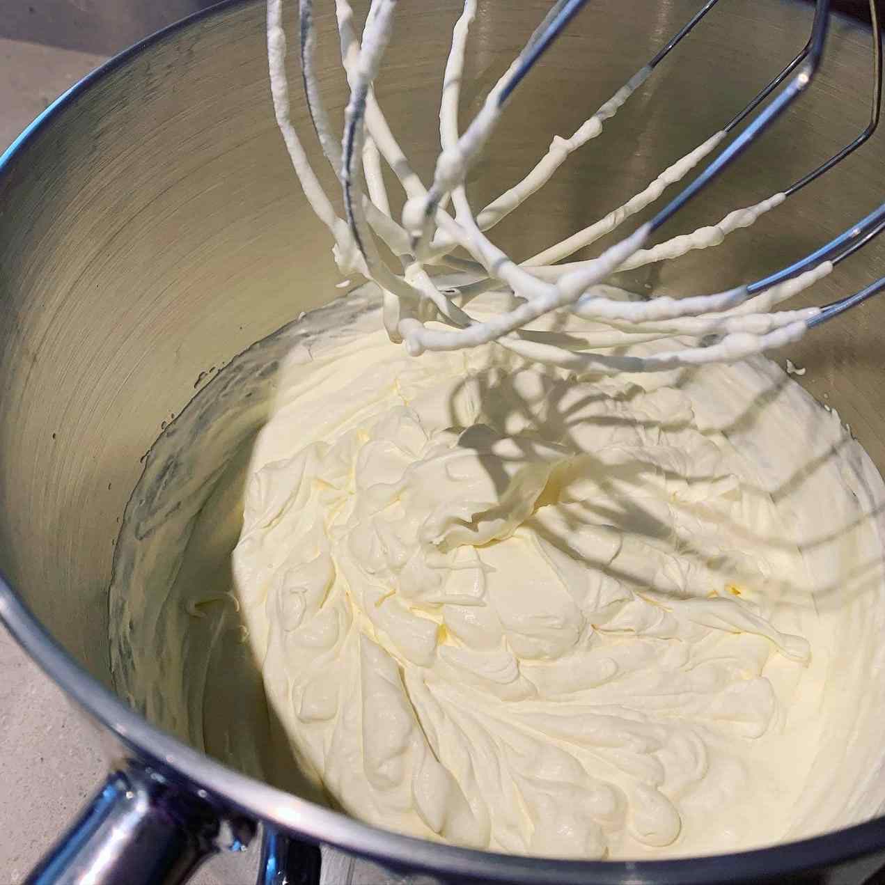 - In a large bowl, whisk, heavy cream and vanilla on high speed until soft peaks form