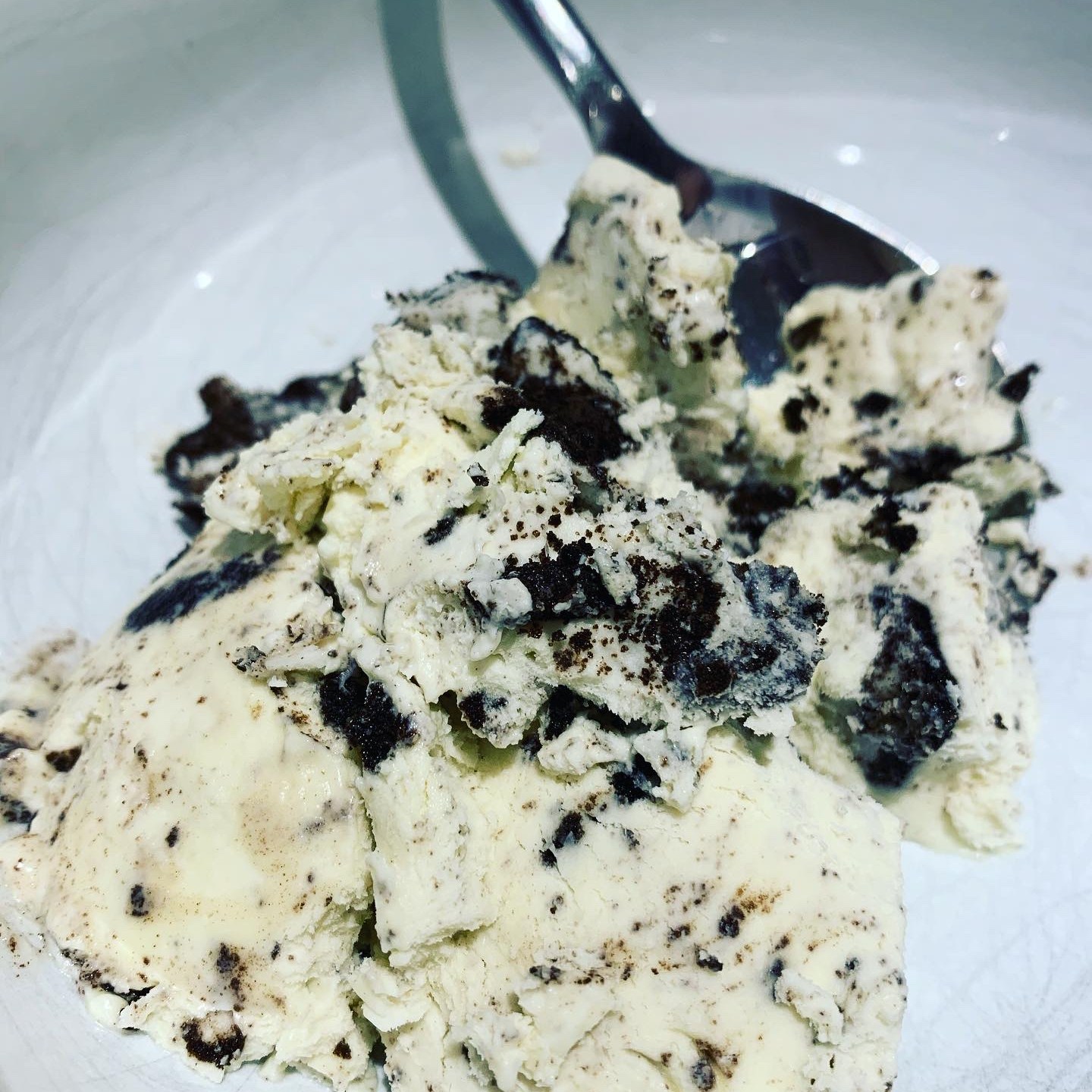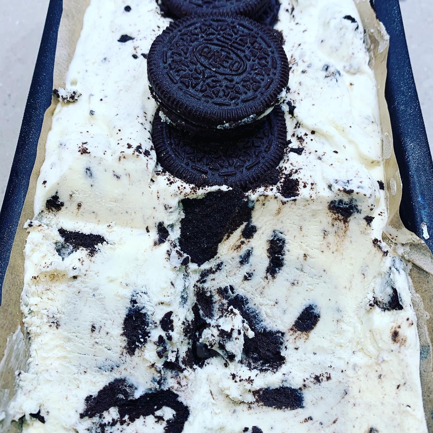 Above is the basic vanilla ice cream base, you can adapt the recipe to what ever flavour suits you, below is how it is made into ‘Oreo Ice Cream’
