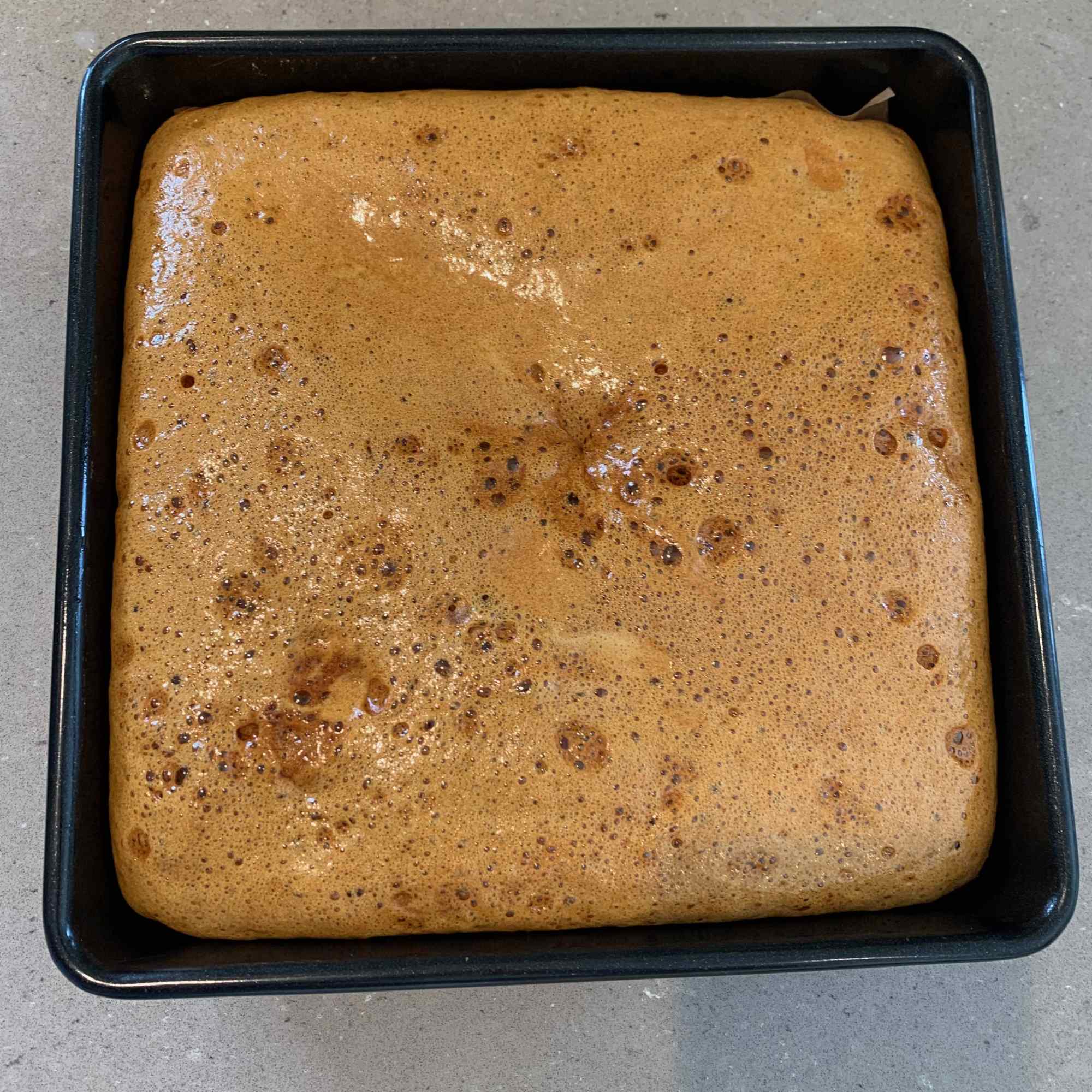 Scrape into a lined tin immediately – be careful, the mixture will be very hot. The mixture will continue bubbling in the tin, simply leave it and in about 1 hr-1 hr 30 mins the honeycomb will be hard and ready to crumble or snap into chunks.