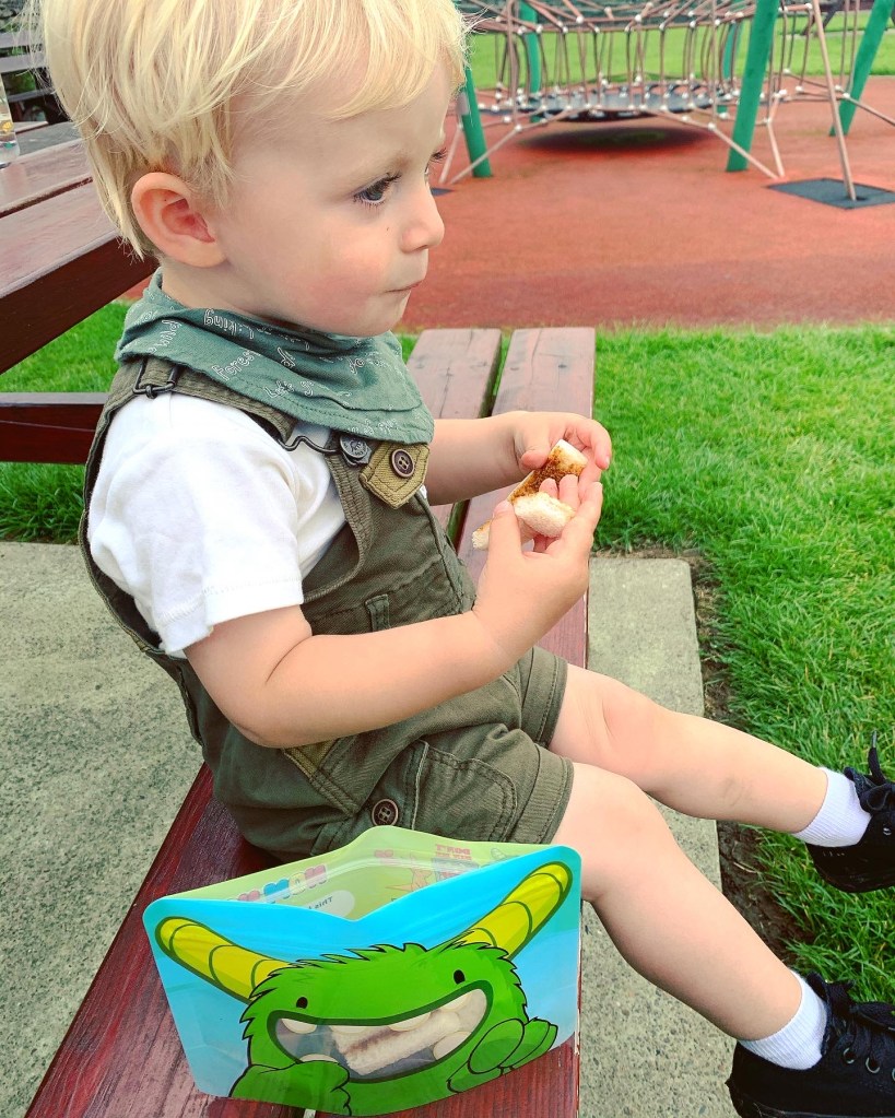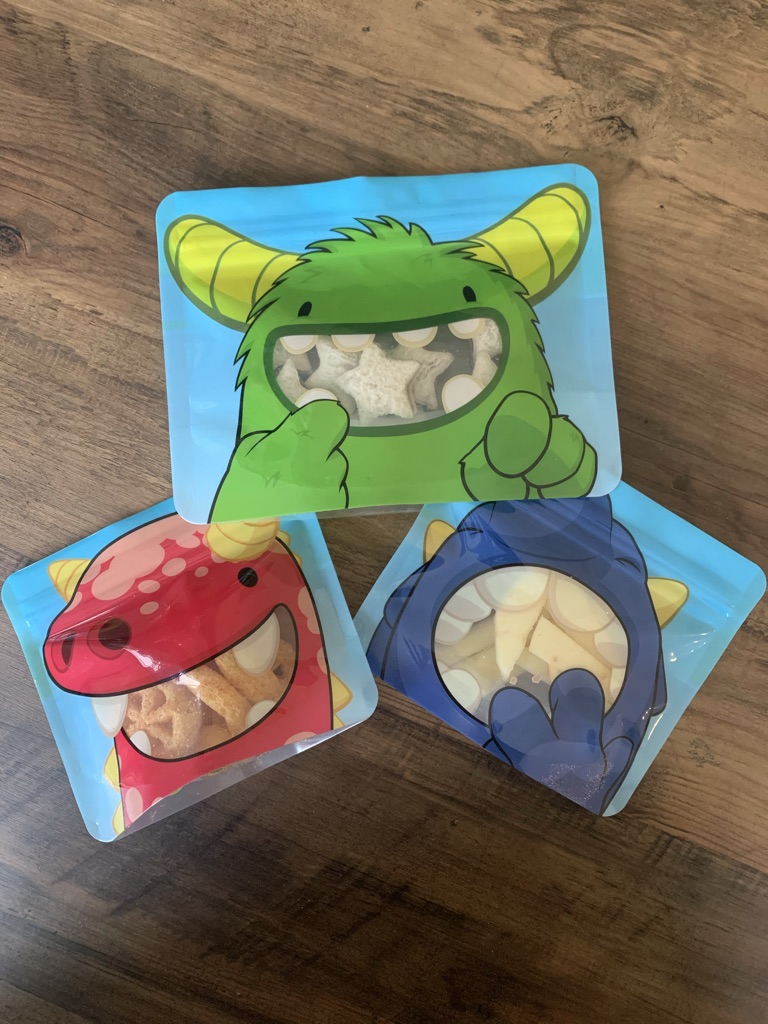 So, why did I chose reusable plastic bags? Truth is, I found myself buying disposable snack bags from Tesco every time I did a big shop. Every lunch I packed for nursery, had 3 or 4 snack bags in… I basically saw how many little bags I was throwing away daily and thought there must be a more sustainable option- both economically and financially! Then I stumbled across these cute little monsters on Instagram!